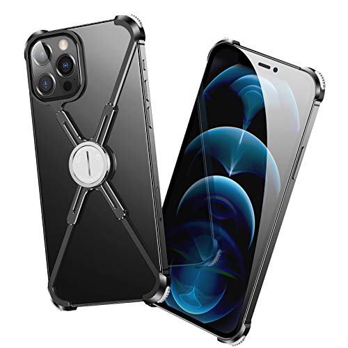 houzz OATSBASF Bumper Case for iPhone 12, Aluminum Metal X-Frame Support Bumpers Compatible with iPhone 12 Pro 6.1 inch (Black)
